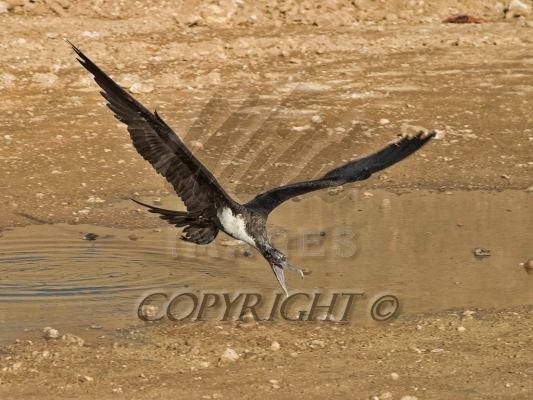 Christmas Island Frigatebird dipping for water in a rain water puddle 136_3668