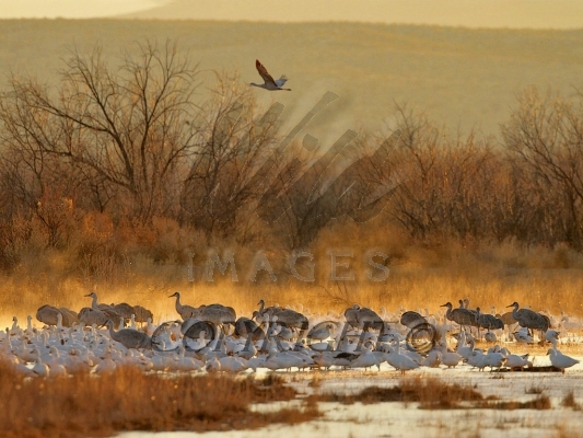 Greater Sandhill Cranes and Light Geese share a steamy roost IMG_5998