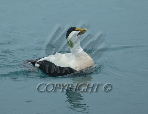 Common Eider drake displaying in courtship behavior 1CGS1794