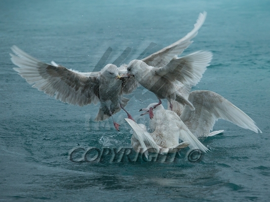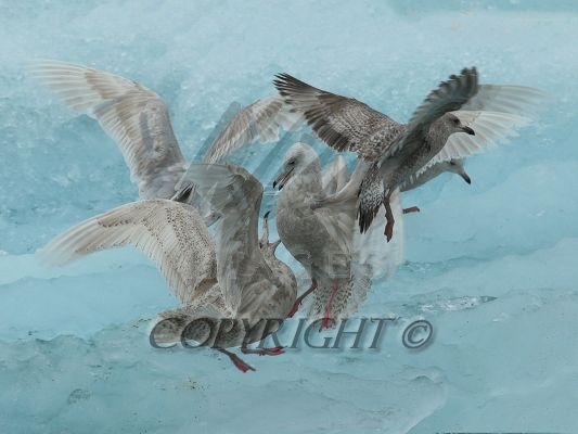 Icelandic Gulls argue over positioning on an ice block 1CGS1084-2