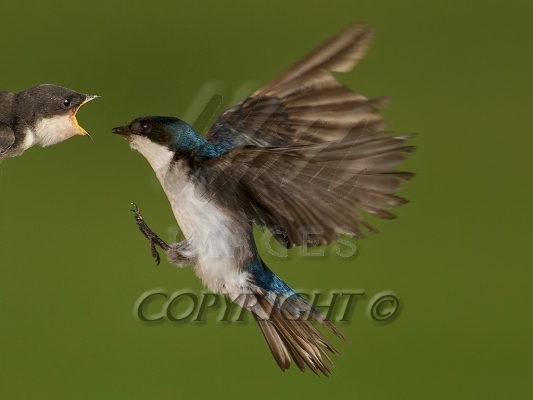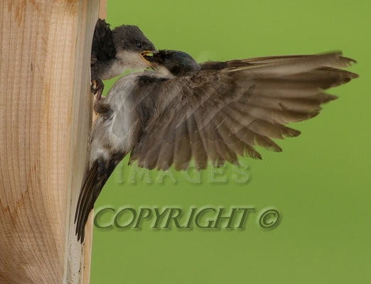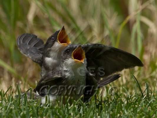 Two Tree Swallow chicks beg to be fed after leaving their nest _GS18673