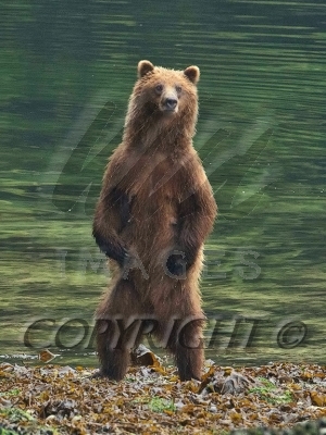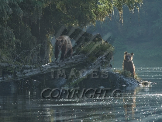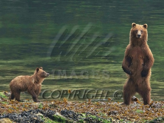 Brown Bear sow stands while cub watches 1CGS5390