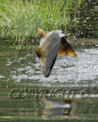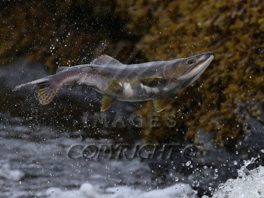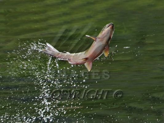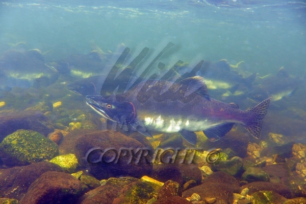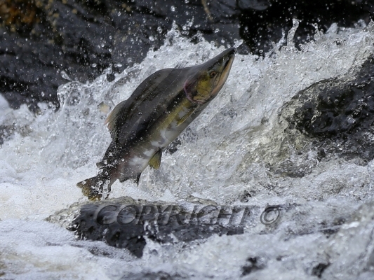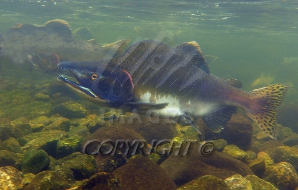 Male Humpback Salmon running upstream during his spawning journey DSC_7376