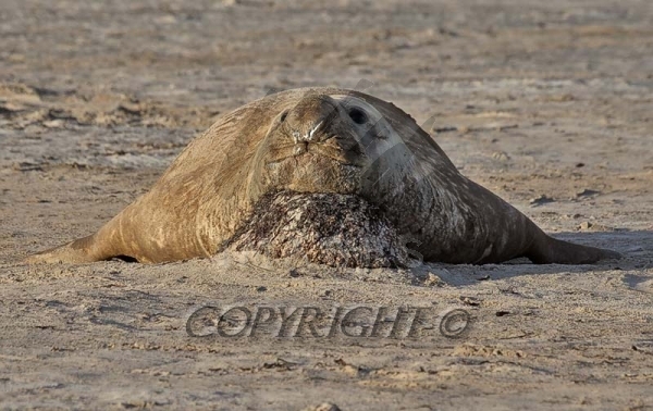 Southern Elephant Seal Bull using sand mound as a pillow 0R7E7049