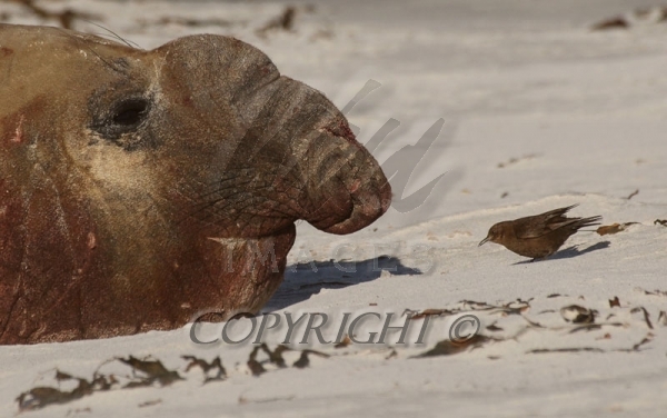 Southern Elephant Seal with Tussic Bird 0R7E6597