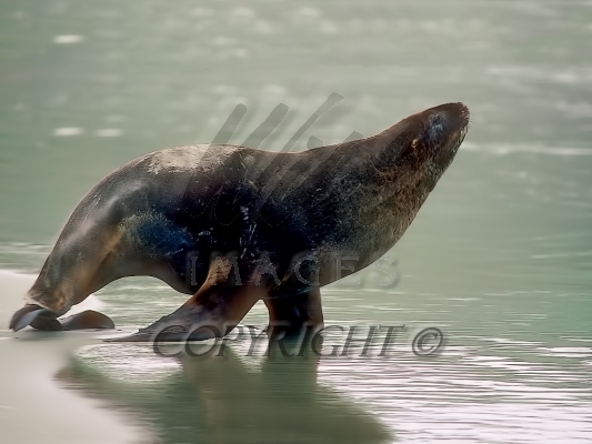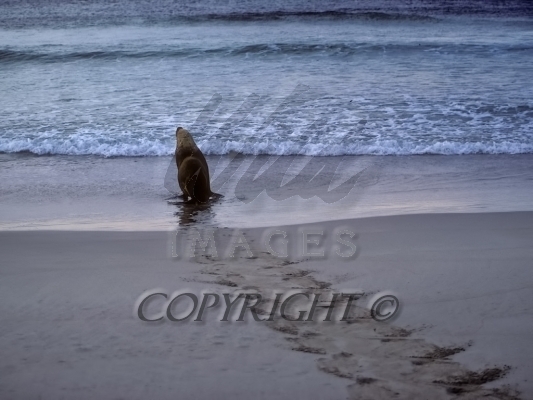 Australian Sea Lion Bull leaves tracks as it heads out to sea 09530-00803