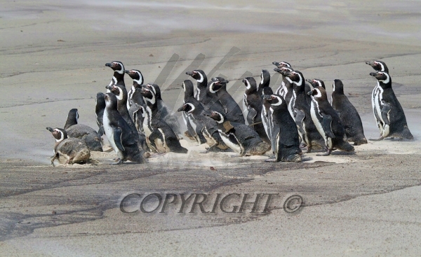 A waddle of Magellanic Penguins prepared to go to sea 0R7E2830
