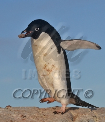 Adelie Penguin carrying a rock to build his nest with 0R7E5257