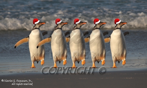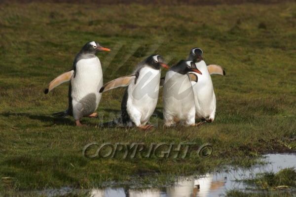 Five dancing Gentoo Penguin