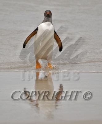 Gentoo Penguin and reflection just emerging from the ocean 0R7E1463