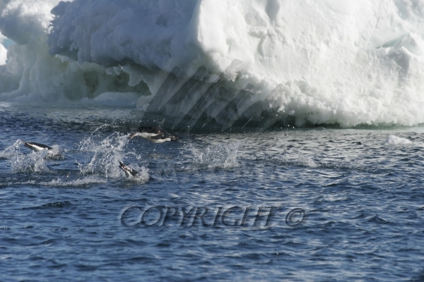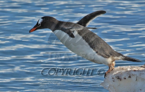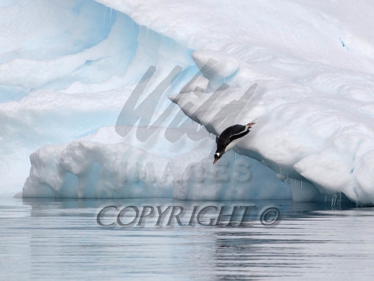 Gentoo Penguin diving off iceburg into Antarctics frigid waters 0R7E4783