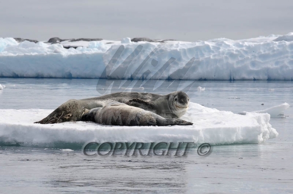 Leopard Seal adult keeps alert while Pup nurses 0R7E4827