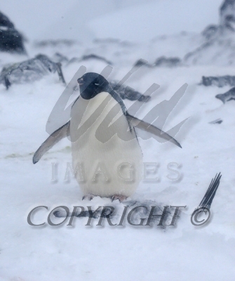 Adelie Penguin returning to rookery after feeding at sea Aptenodytes patagonicus CS Antarctica 04200-00105