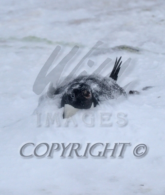 Nesting Adelie Penguin covered with snow and ice 0R7E3228
