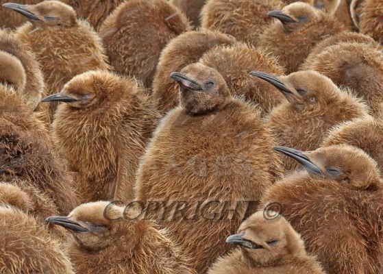 Oakum Boys (King Penguin chicks) huddled together for warmth 0R7E2747