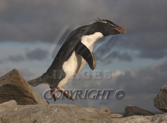 Rockhopper Penguin in mid air 0R7E7225