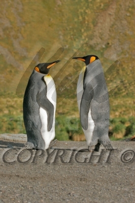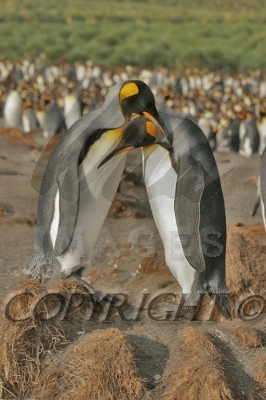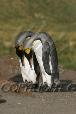 King Penguin pair note one on left has rocked back on its heels 04025-00311