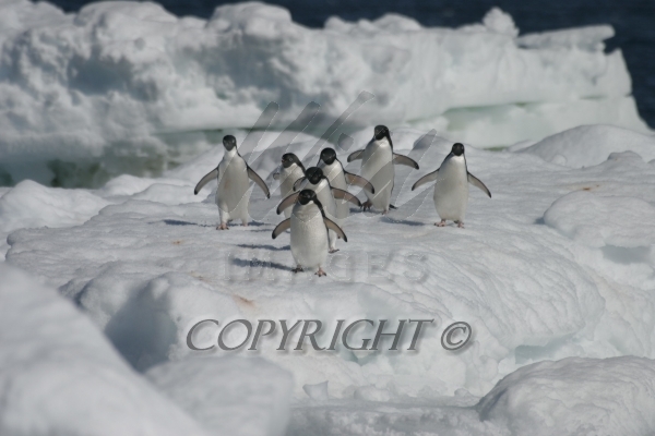 Adelie Penguin group on pack ice Aptenodytes patagonicus CS Antarctica 04200-00109