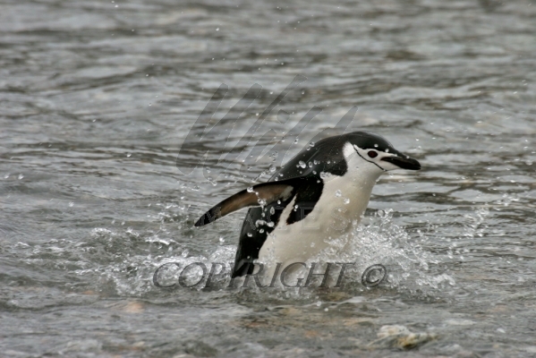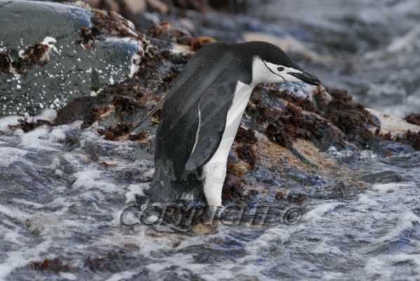 Chinstrap Penguin just coming ashore after feeding session at sea Pygoscelis antarctica CS Antarctica 04201-00105