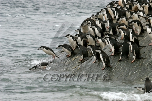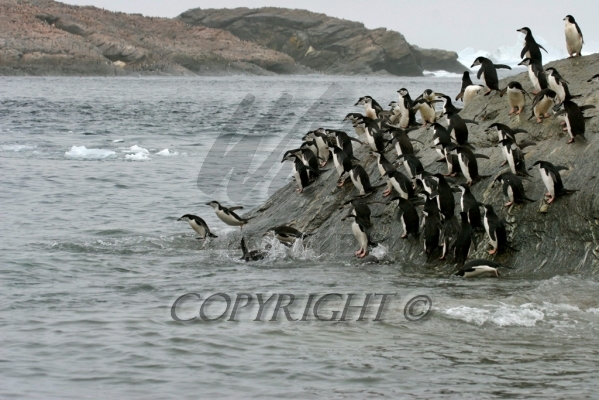 Chinstrap Penguins diving into the sea to feed Pygoscelis antarctica CS Antarctica 04201-00104