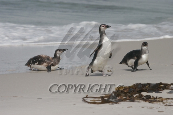 Three Magellanic Penguins-immature-return from fishing at sea Spheniscus magellanicus CS Falk 04207-00303