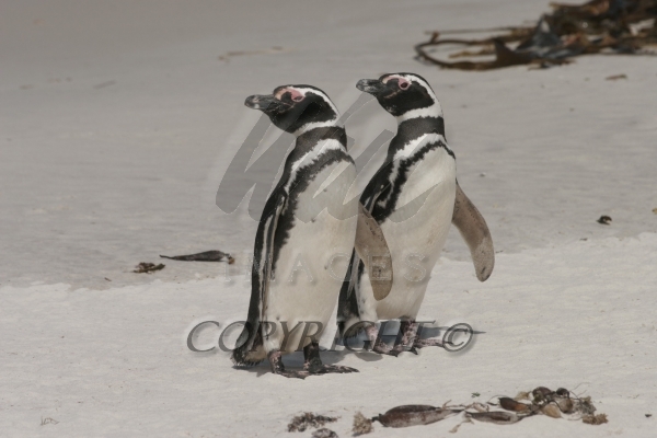 Two Magellanic Penguins return to shore after feeding at sea Spheniscus magellanicus CS Falk 04207-00305