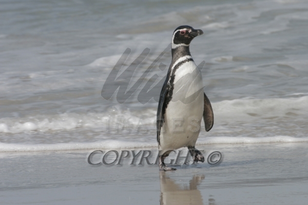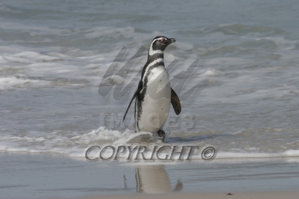 Magellanic Penguin coming out of the surf after feeding at sea Spheniscus magellanicus CS Falk 04207-00309